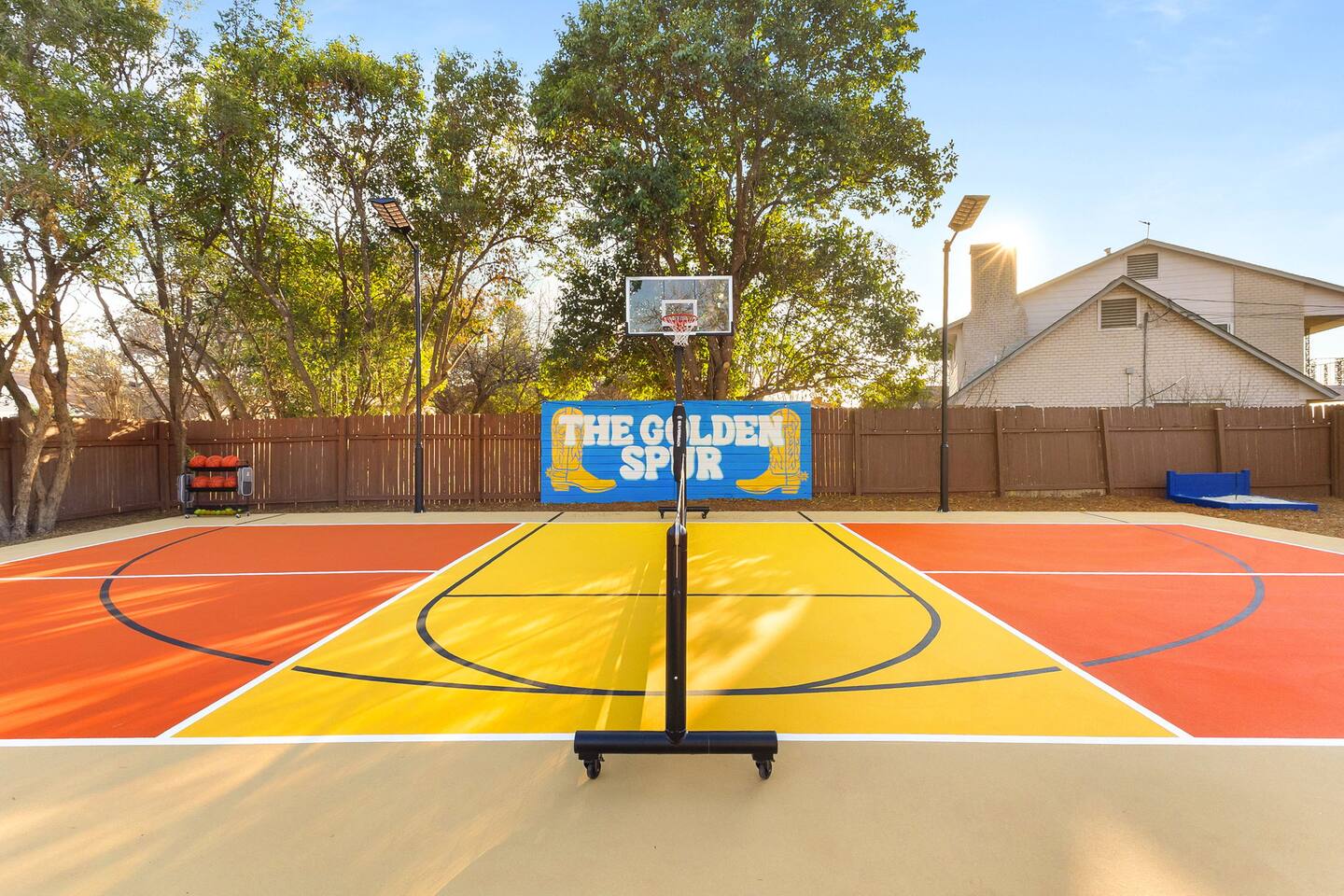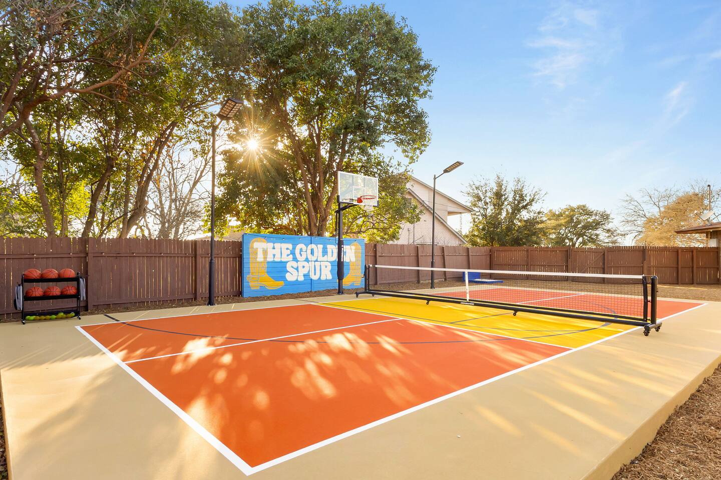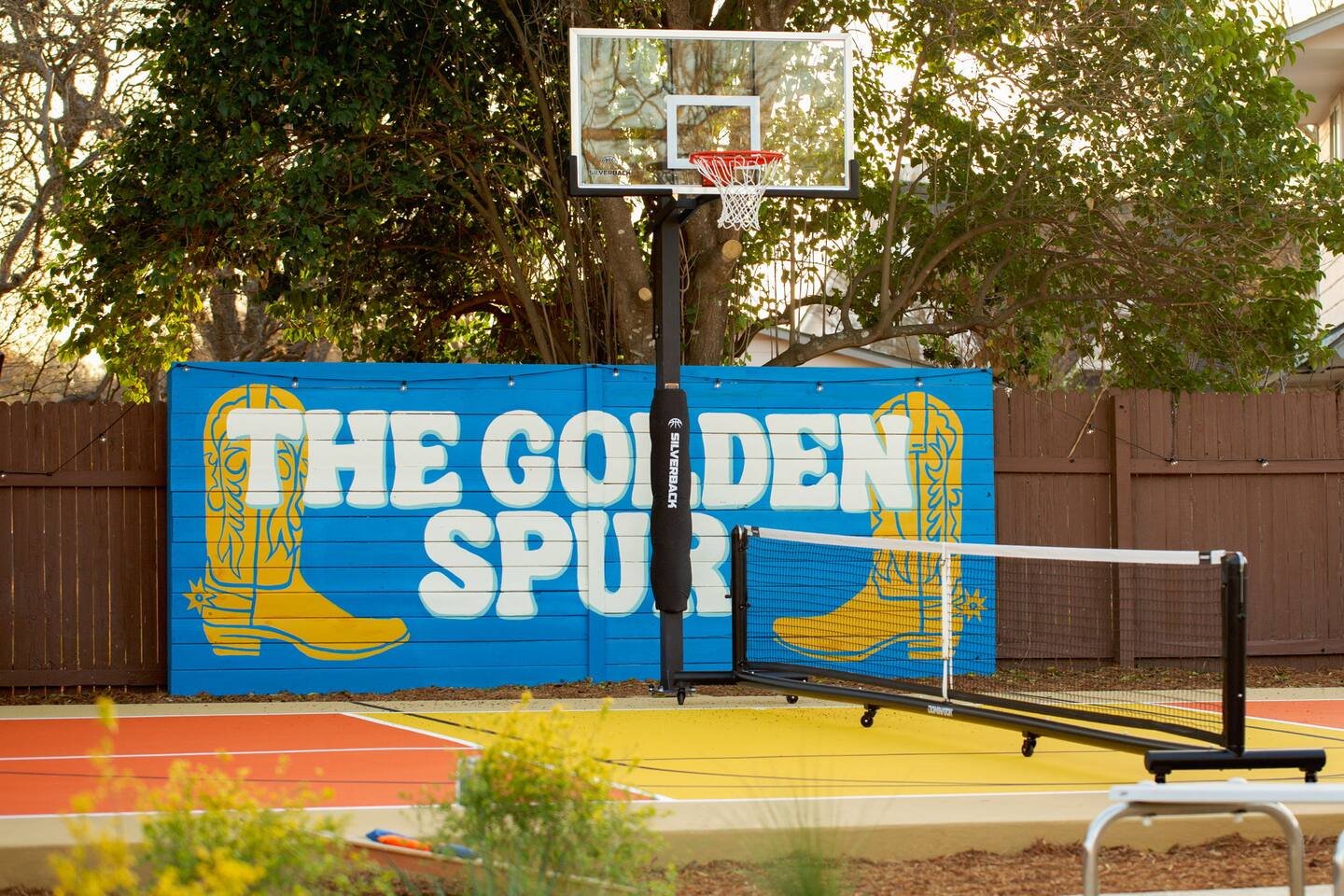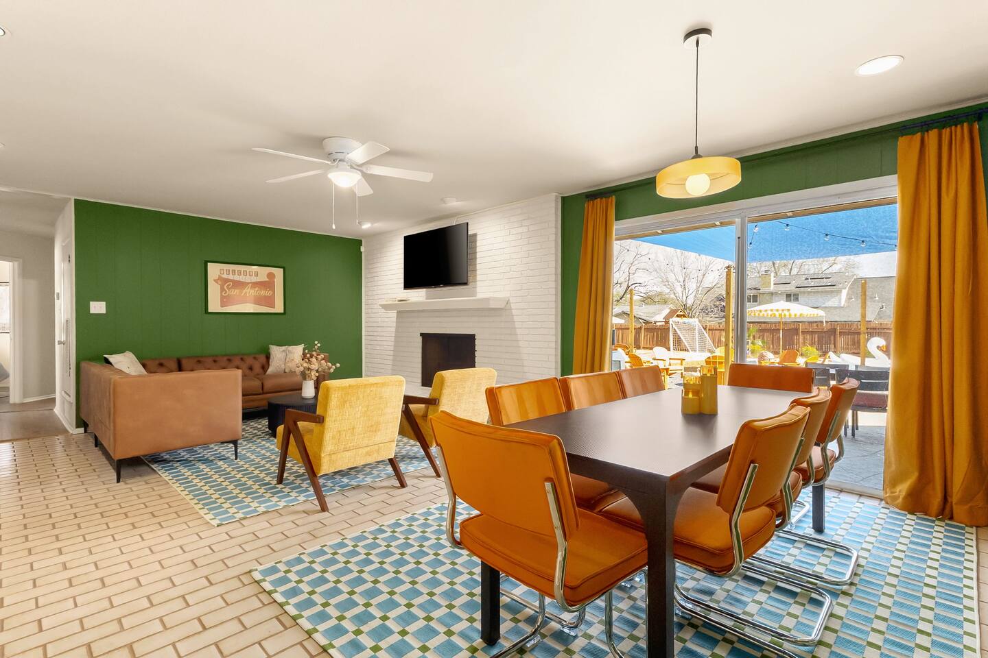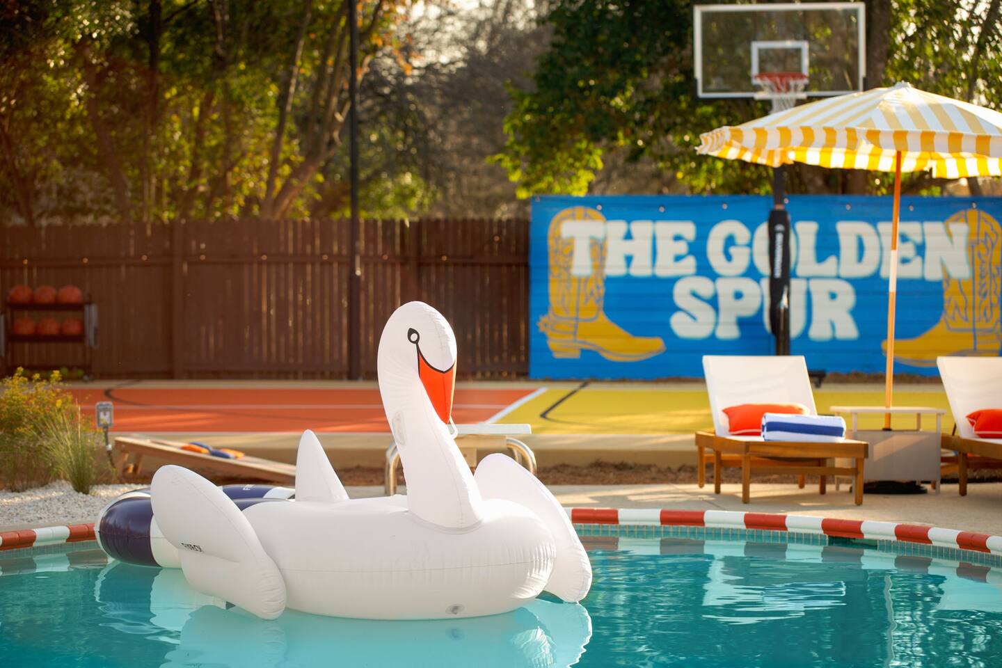 The Texas Time Machine welcomes you to a one-of-a-kind escape in beautiful San Antonio! This professionally designed home has been completely transformed into an retro oasis, perfect for families and groups of 16 or more guests! Outdoor with Everything: Step back in time but up in comfort! - One-of-a-kind kids soccer field with targets & balls for future World Cup stars - Tree house with climbing wall & slide - Take a dip in the 70's style large pool - Relax in the bubbling hot tub - Shoot hoops under the lights on a basketball court - Full Pickleball court to play during day or under the lights - Horseshoe pit - Cornhole - Life sized Connect 4 - Rope golf (ladder golf) and more. The fire pit creates the perfect ambiance for evening gatherings, plus the outdoor gas grill ♨️ and dining area is ideal for those al fresco meals. Indoor Entertainment: Step inside and enjoy a world of fun! Our movie theater room with 75" Smart TV is perfect for family movie nights with the most comfortable couches & fresh popcorn, while the game room boasts: - A pool table - Shuffleboard - Favorite arcade games: Golden Tee and Fast & Furious Street Fighter. - Spacious living room and communal areas for large groups and memory making! Luxury Accommodations: Four spacious 🛌 bedrooms provide ultimate comfort and the theatre features two queen raised bunk beds. All bedding from Quince is 100% organic cotton percale. A Pack-n-Play is stored for you in the hall closet with an 100% organic cotton sheet if you're bringing the little one 👶. All new furniture throughout the house designed to transport you to an experience, not feel like you're renting just another house. All bathrooms are fully stocked with Public Goods shampoo, conditioner, body wash, hand soap and lotion. Enjoy your slow mornings with freshly brewed coffee, tea, and even waffles made fresh with the provided waffle iron. Location, Location, Location: Located just minutes from top attractions, dining, and shopping, you’ll have easy access to everything San Antonio has to offer — from SeaWorld and Six Flags Fiesta Texas to Downtown San Antonio’s River Walk and The Alamo. Perfect for: Family vacations & group retreats. Your experience: We designed this home to deliver an exceptional guest experience. We have provided a fully equipped kitchen, and high speed Google wifi. Everything needed to have a great time is here, all that's missing is you! Guest access The space is all yours! This is a residential neighborhood. The backyard is very private and tons of fun. Registration Details: 2025-1296