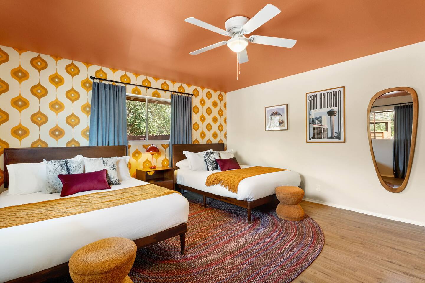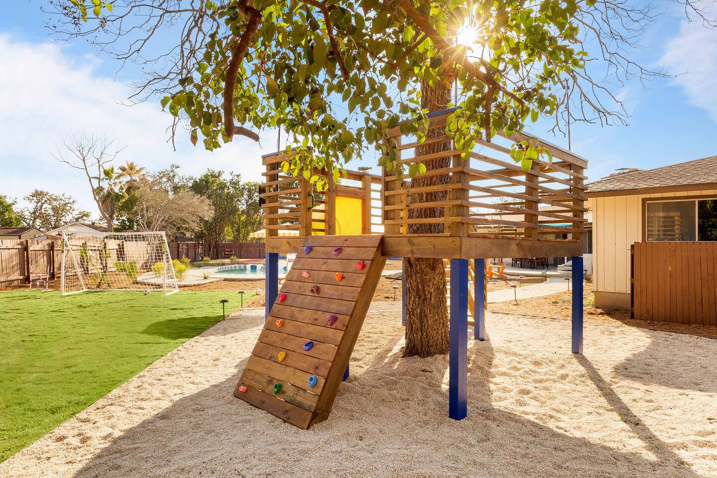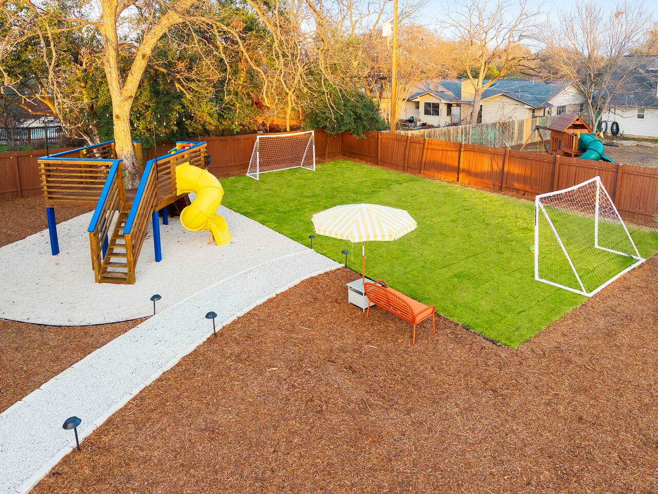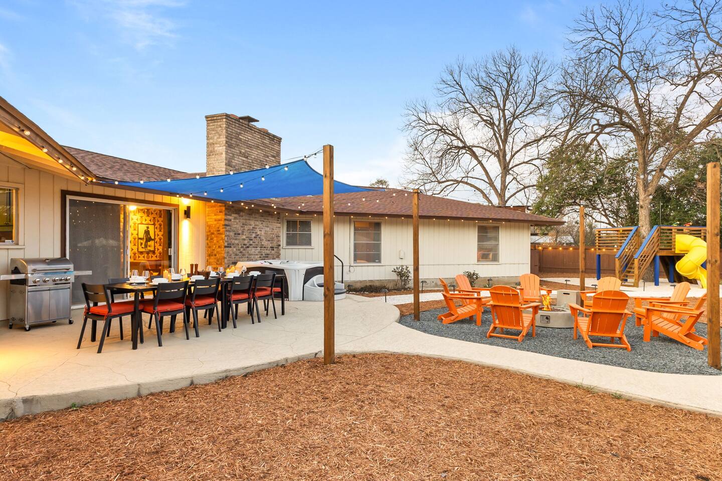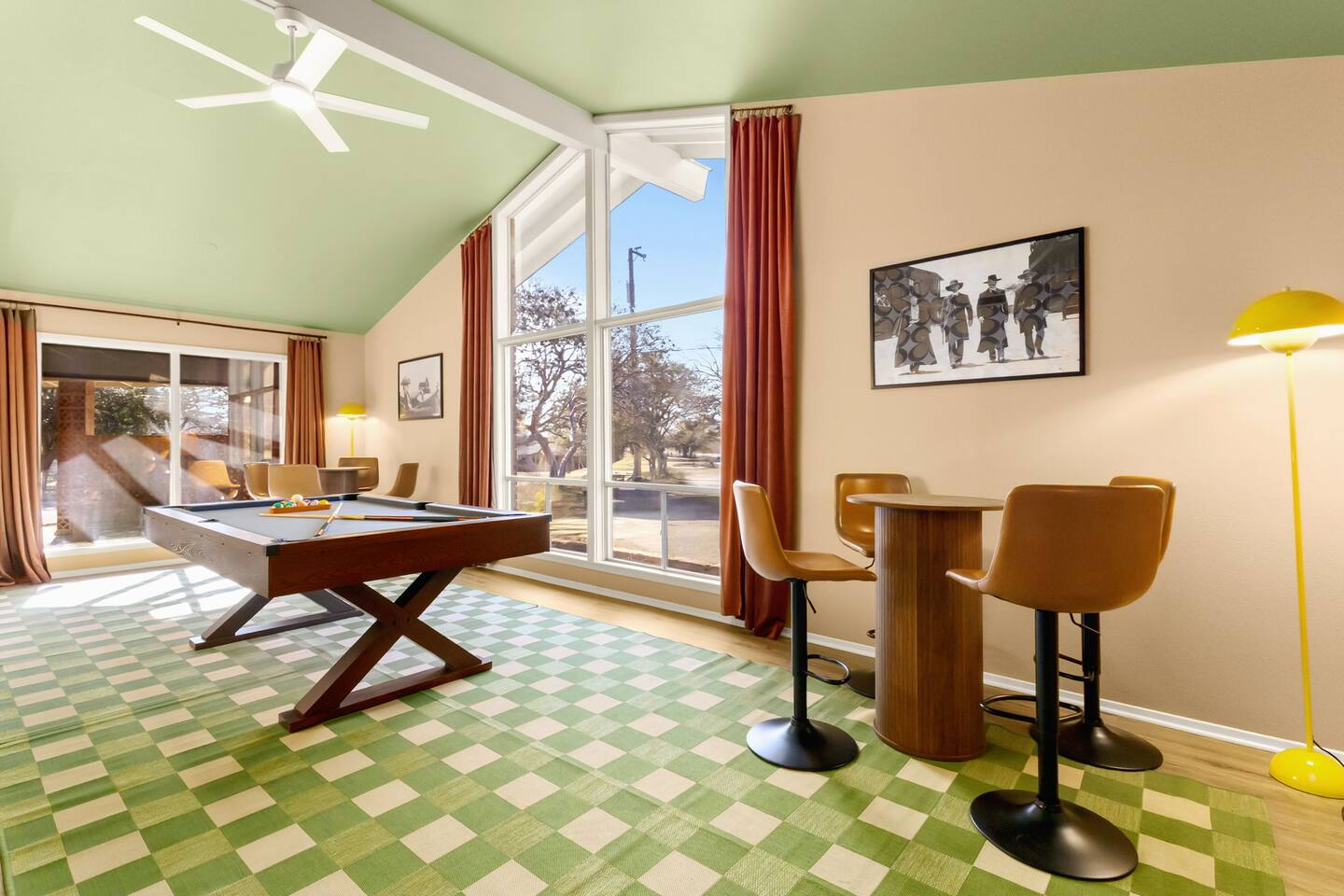 The Texas Time Machine welcomes you to a one-of-a-kind escape in beautiful San Antonio! This professionally designed home has been completely transformed into an retro oasis, perfect for families and groups of 16 or more guests! Outdoor with Everything: Step back in time but up in comfort! - One-of-a-kind kids soccer field with targets & balls for future World Cup stars - Tree house with climbing wall & slide - Take a dip in the 70's style large pool - Relax in the bubbling hot tub - Shoot hoops under the lights on a basketball court - Full Pickleball court to play during day or under the lights - Horseshoe pit - Cornhole - Life sized Connect 4 - Rope golf (ladder golf) and more. The fire pit creates the perfect ambiance for evening gatherings, plus the outdoor gas grill ♨️ and dining area is ideal for those al fresco meals. Indoor Entertainment: Step inside and enjoy a world of fun! Our movie theater room with 75" Smart TV is perfect for family movie nights with the most comfortable couches & fresh popcorn, while the game room boasts: - A pool table - Shuffleboard - Favorite arcade games: Golden Tee and Fast & Furious Street Fighter. - Spacious living room and communal areas for large groups and memory making! Luxury Accommodations: Four spacious 🛌 bedrooms provide ultimate comfort and the theatre features two queen raised bunk beds. All bedding from Quince is 100% organic cotton percale. A Pack-n-Play is stored for you in the hall closet with an 100% organic cotton sheet if you're bringing the little one 👶. All new furniture throughout the house designed to transport you to an experience, not feel like you're renting just another house. All bathrooms are fully stocked with Public Goods shampoo, conditioner, body wash, hand soap and lotion. Enjoy your slow mornings with freshly brewed coffee, tea, and even waffles made fresh with the provided waffle iron. Location, Location, Location: Located just minutes from top attractions, dining, and shopping, you’ll have easy access to everything San Antonio has to offer — from SeaWorld and Six Flags Fiesta Texas to Downtown San Antonio’s River Walk and The Alamo. Perfect for: Family vacations & group retreats. Your experience: We designed this home to deliver an exceptional guest experience. We have provided a fully equipped kitchen, and high speed Google wifi. Everything needed to have a great time is here, all that's missing is you! Guest access The space is all yours! This is a residential neighborhood. The backyard is very private and tons of fun. Registration Details: 2025-1296