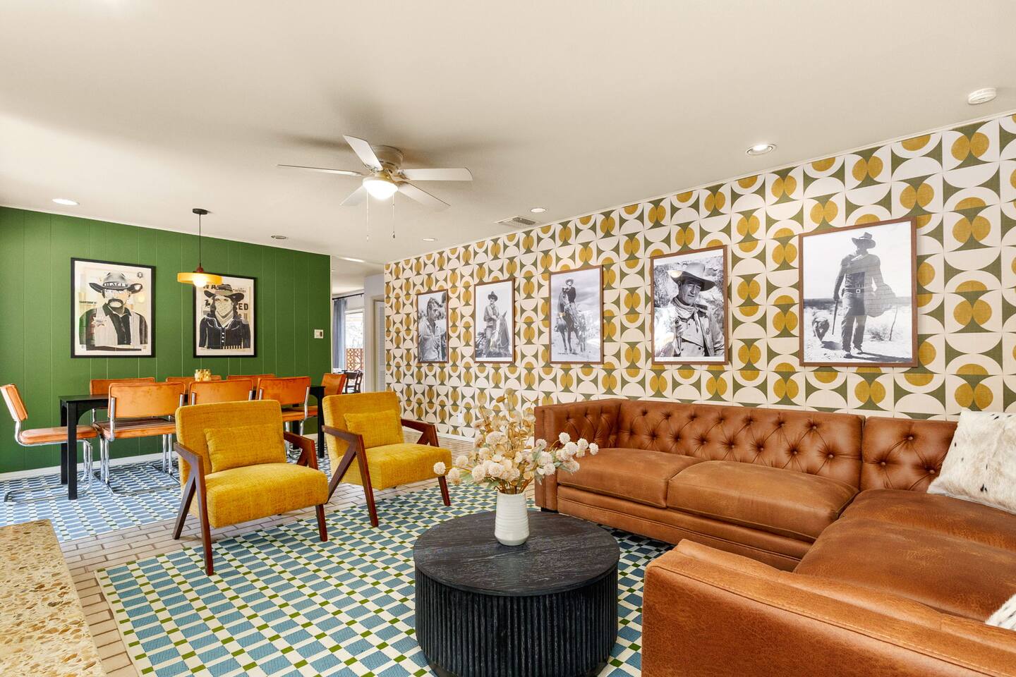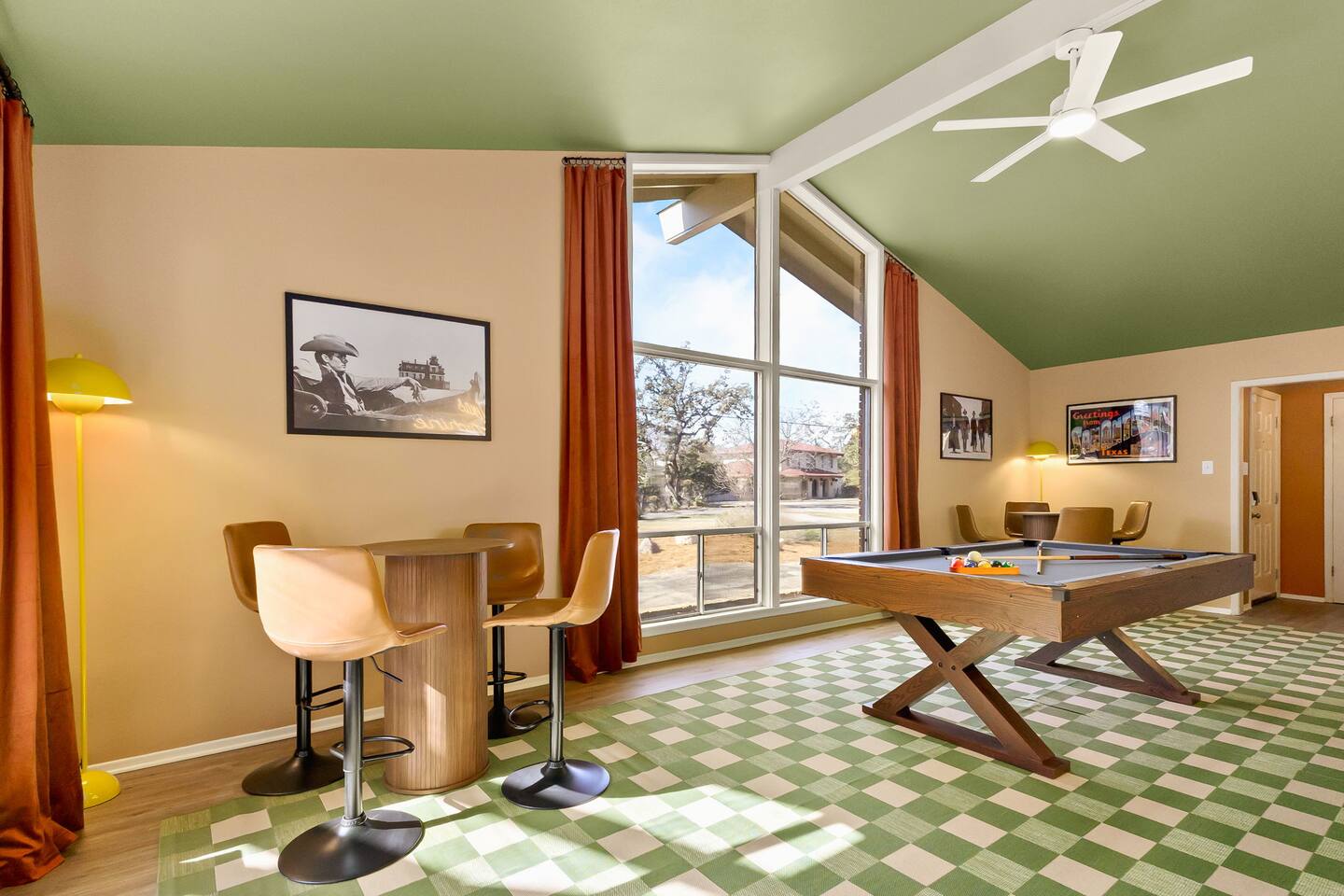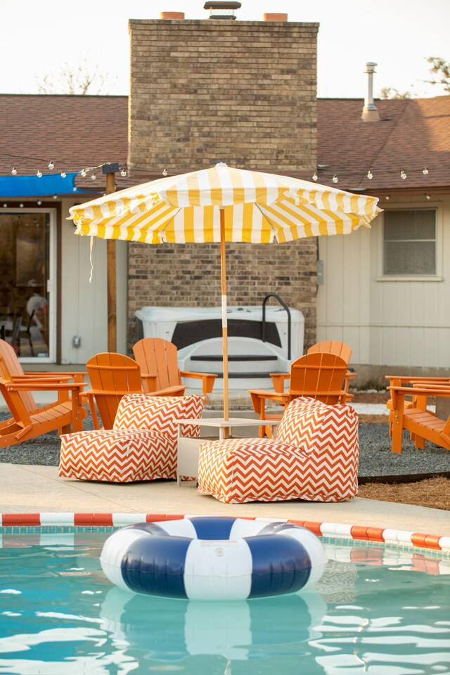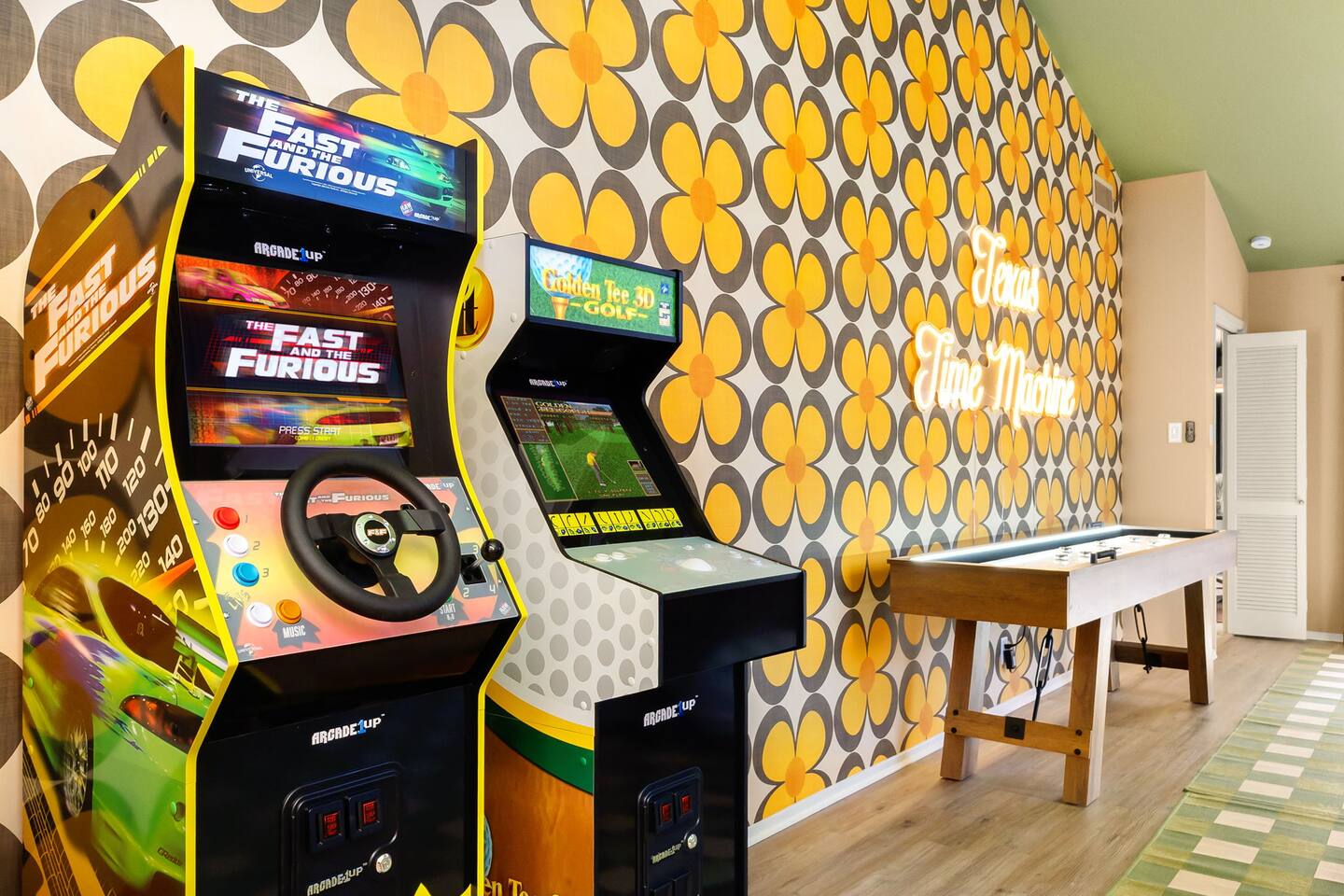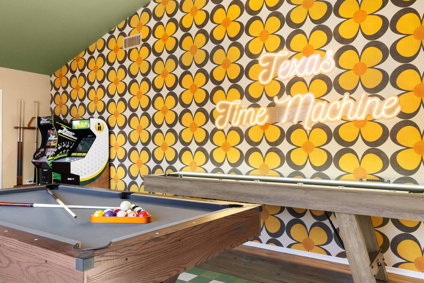 The Texas Time Machine gives you a retro, first-class experience with all the amenities to suit any group ~15 mins from local attractions - .5 acres of play including soccer field for kids, treehouse, horseshoe pit, lit pickleball and basketball court, firepit, BBQ - Relaxing large pool and hot tub - Interior w/everything - private theatre (w/popcorn), pool table, light up shuffleboard, arcade games (Golden Tee, Fast & Furious) All set within a retro cowboy design for a relaxing escape
